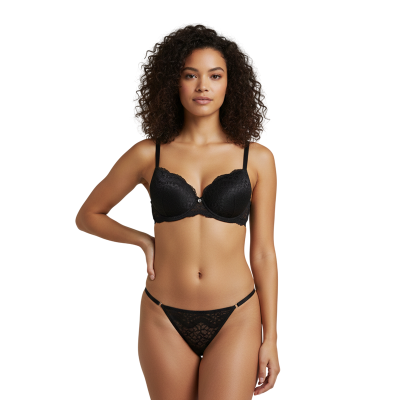 O conjunto é composto por um sutiã 82% Poliamida, 18% Elastano e forro 100% Algodão com um detalhe de renda incrível, alças ajustáveis de regulagem e fecho colchete nas costas oferecendo mais protecção o dia inteiro para você usar e abusar dessa peça onde quiser além de uma calcinha 92% Poliéster, 08% Elastano e Forro 100% Algodão modelo tanga de regulagem fio duplo forrada.