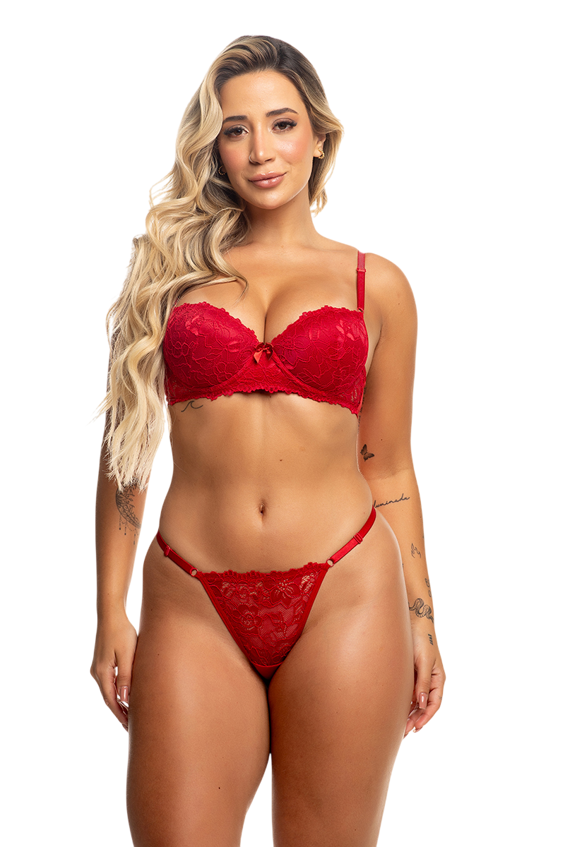O conjunto é composto por um sutiã 90% Poliamida, 10% Elastano e forro 100% Algodão com um detalhe de renda incrível, alças ajustáveis de regulagem e fecho colchete nas costas oferecendo mais protecção o dia inteiro para você usar e abusar dessa peça onde quiser além de uma calcinha 90% Poliamida, 10% Elastano e Forro 100% Algodão modelo tanga de regulagem fio duplo forrada.